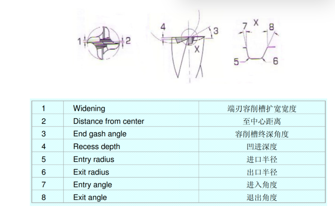 11,铣刀端容屑槽 Milling cutter end gash