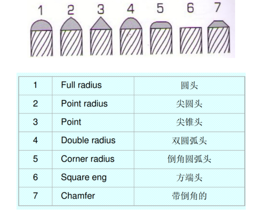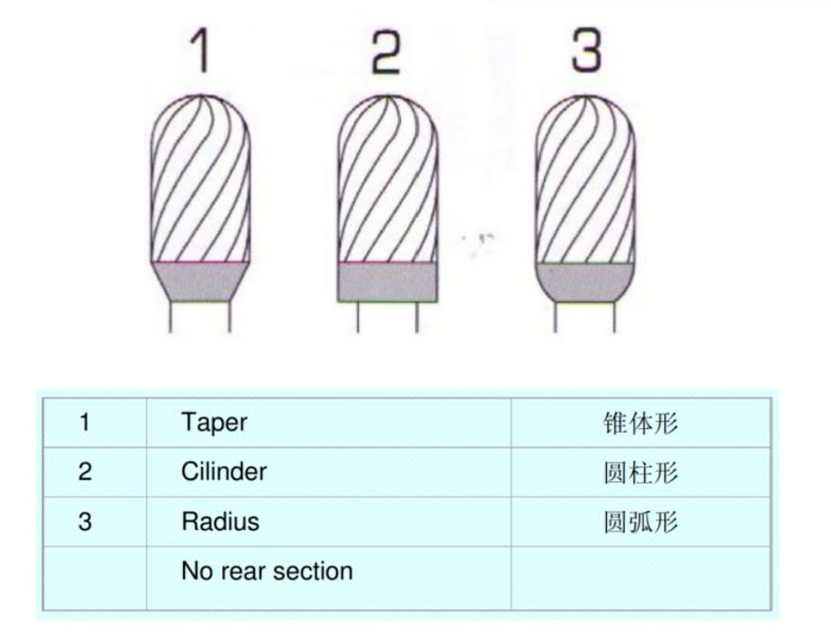1,刀柄尾端磨削形式的识别 Circular grind shank end