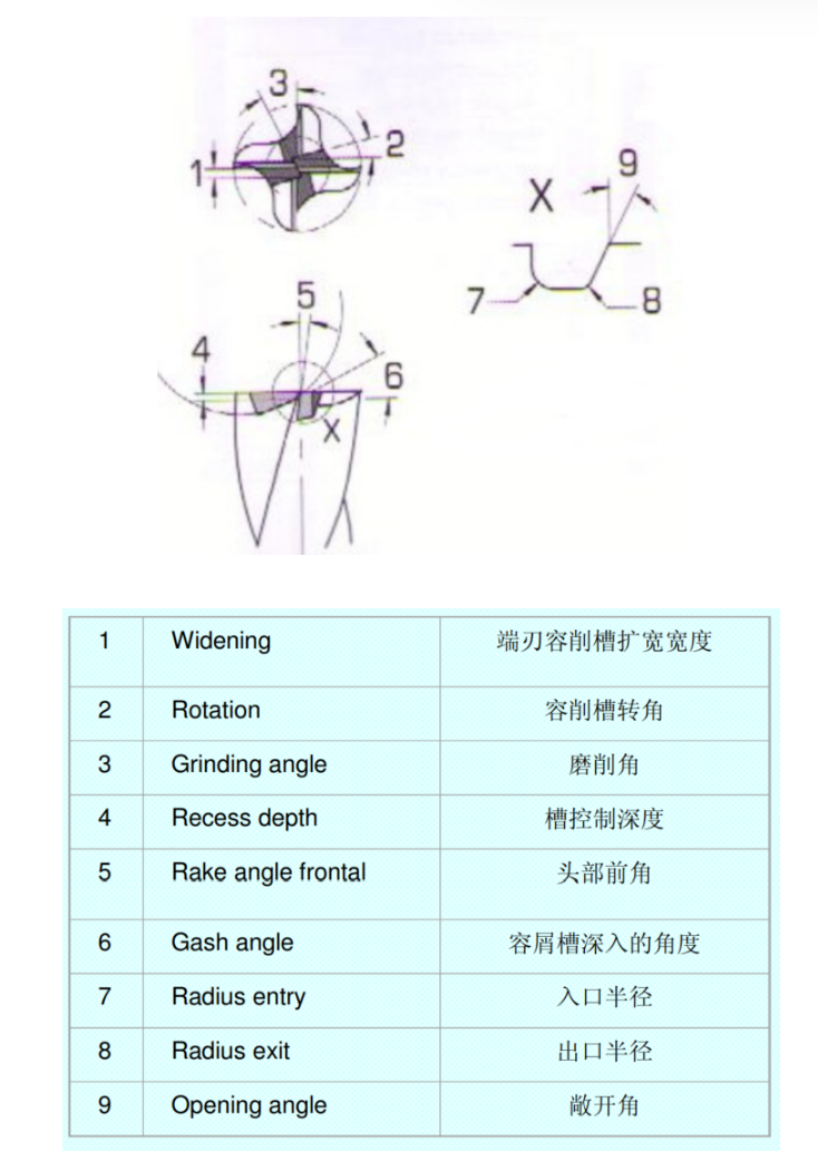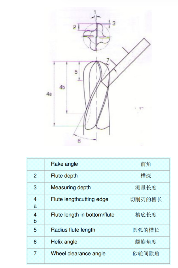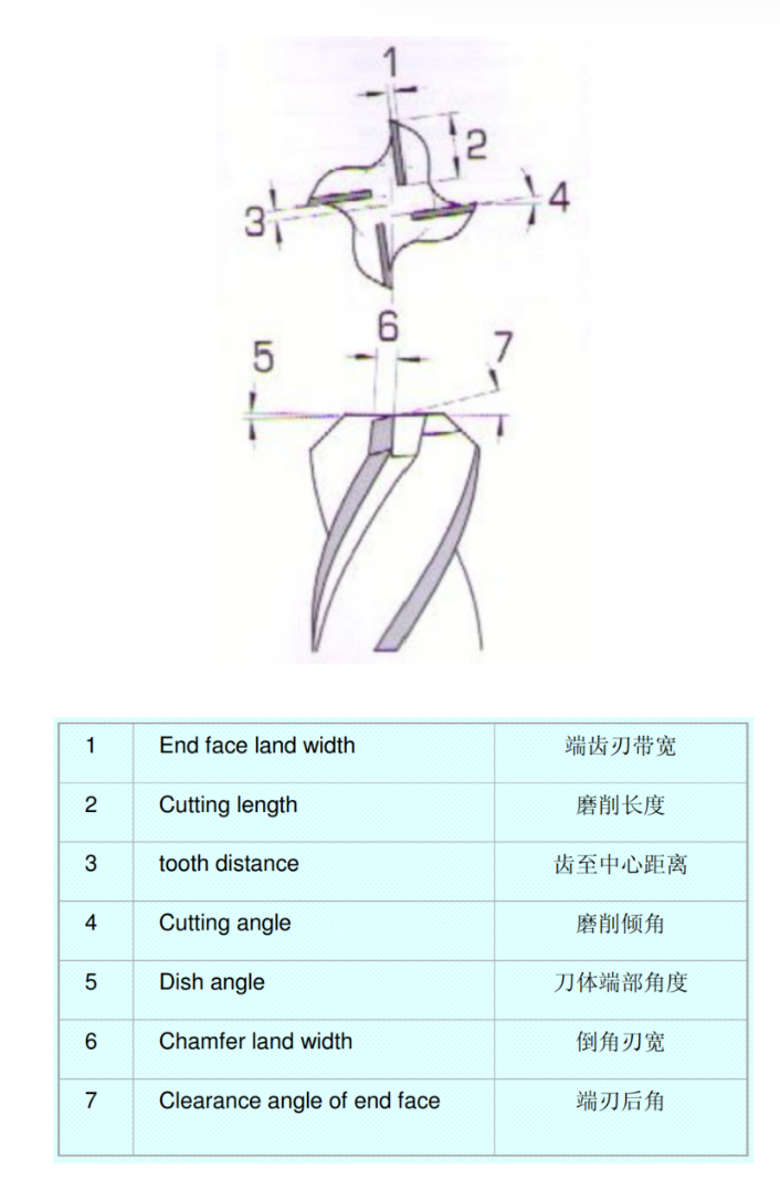 5,铣刀前端刃磨方式 Milling cutter grinding method front