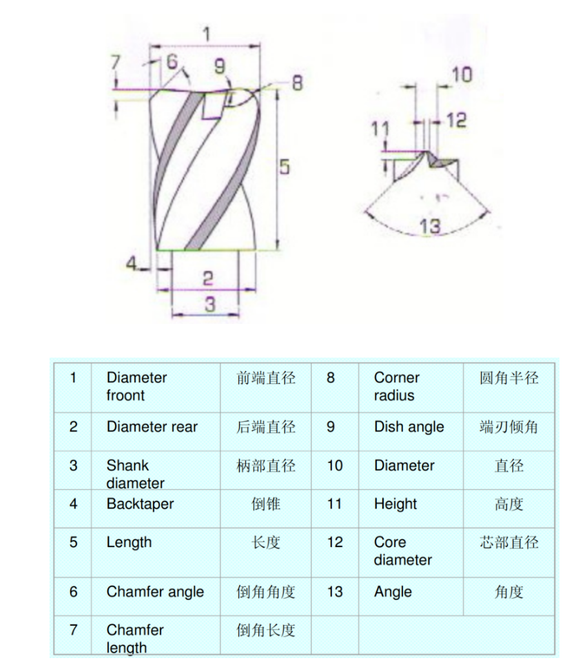 了解被磨削刀具的刃型构成,对刀具刃口的磨削至关重要。以下主要刀具术语解释由PDT中国技术团队提供,供您参考。